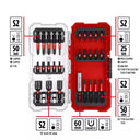 • Materiales de alta calidad: Las puntas están fabricadas en acero S2 robusto y fosfatado con manganeso, mientras que las llaves de vaso están hechas de acero al cromo vanadio (CV) fosfatado con manganeso, garantizando durabilidad y resistencia.