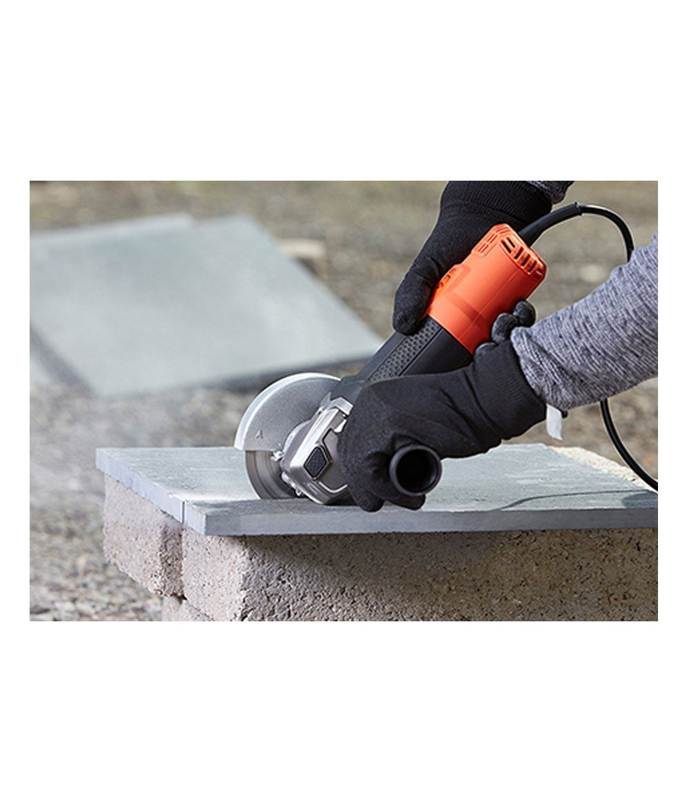 Black+Decker BEG220 angle grinder. Powerful and compact angle grinder, this new range is recognized for the double safety switch, durability with its metal casing and its accessibility with the tool-free disc change.