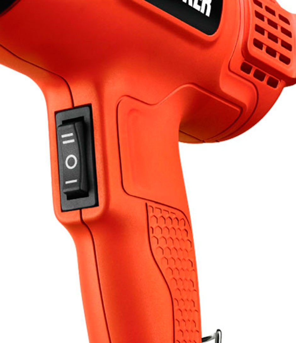 The Black&Decker KX1650 stripper, with 1,750 W of power and variable temperature setting 460/565ºC, is ideal for cleaning paint, varnishes and adhesives. Includes a stand for hands-free applications and 2 heat and airflow settings for greater control in different applications.