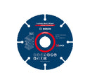The Bosch EXPERT Multi Material carbide cutting disc is a professional accessory made with tungsten carbide technology, designed to efficiently cut multiple materials with a single tool. Its edge, with carbide grains laser-welded to the reinforced steel body, provides exceptional durability, consistent cutting depth, and speed throughout the disc's lifespan.