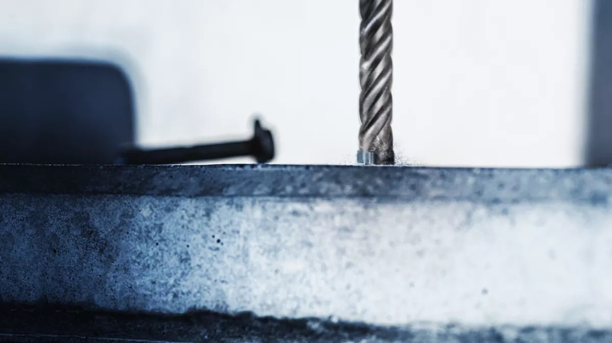 - Drills reinforced concrete with a solid carbide head with 4 cutting edges