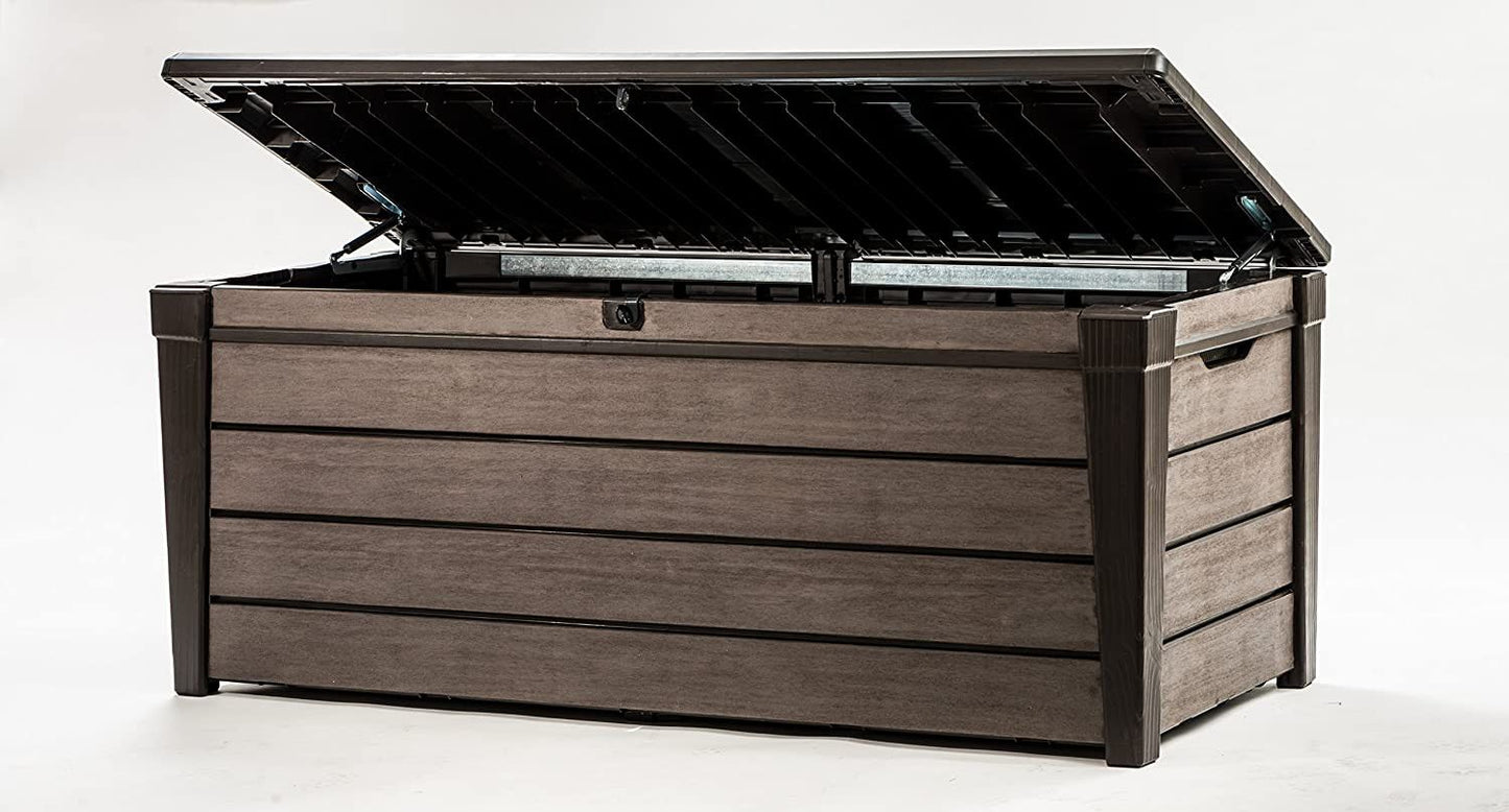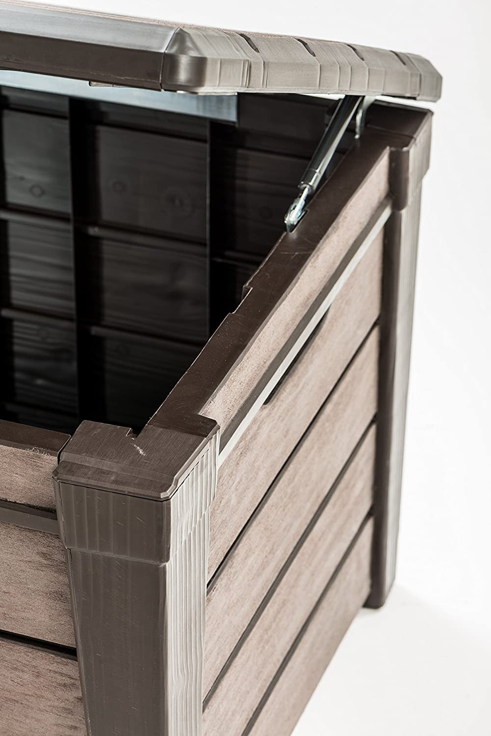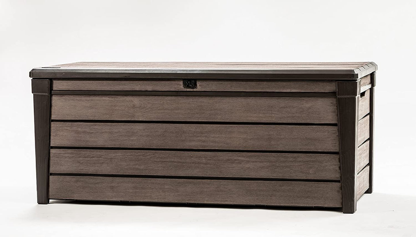 Brushwood Garden Chest by Keter. This fantastic 100% outdoor resin chest will allow you to organize your garden. Revolutionary design in top quality materials that, in addition to withstanding the elements, can be painted with any traditional exterior paint, allowing you to personalize your chest.