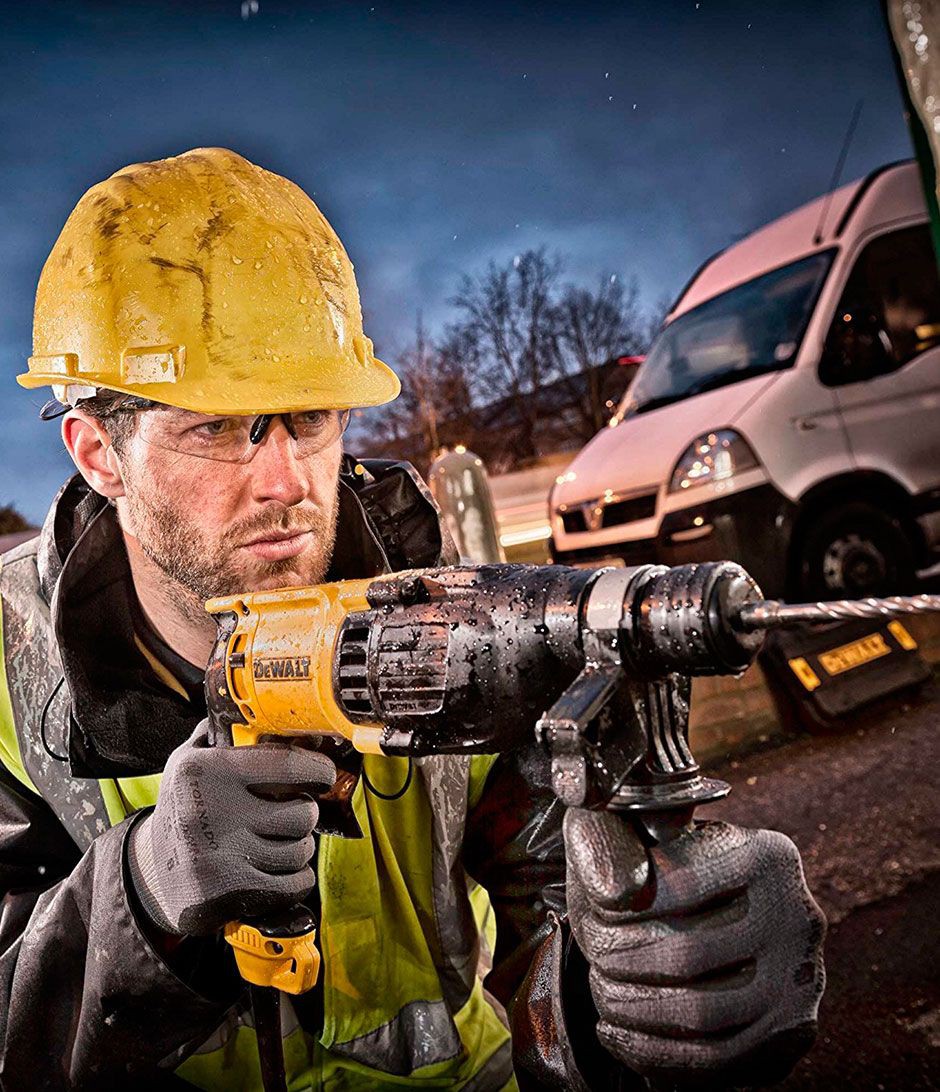 The DeWalt D25033K SDS PLUS 3-mode lightweight hammer features an ergonomic design that offers a comfortable and balanced grip for any application. It also features improved sealing that provides maximum protection against dust ingress, ensuring a long tool life. Its distinctive features include air outlet vents, designed primarily to protect the user's eyes.