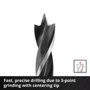 • 3-point tip with center point : Ensures fast and precise drilling start, reducing slippage and improving work accuracy.