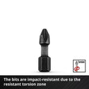 - Impact bit holders (60 mm): Made of carbon steel with a stainless steel sleeve and powerful magnet for precise bit guidance.