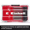 • Practical storage box allows for organized storage and makes it easy to quickly identify bits thanks to its transparent lid. The self-locking clip closure ensures a secure hold during transport and storage.