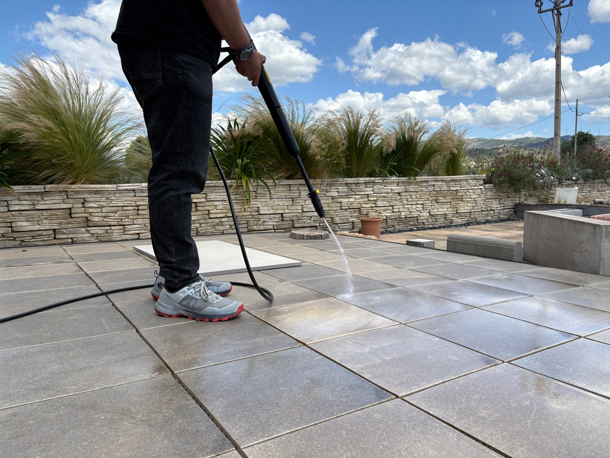 Ideal pressure washer for cleaning stubborn dirt present on medium-sized exterior domestic surfaces, gates, benches, garden furniture and tools, cars, bicycles, steps and swimming pools.