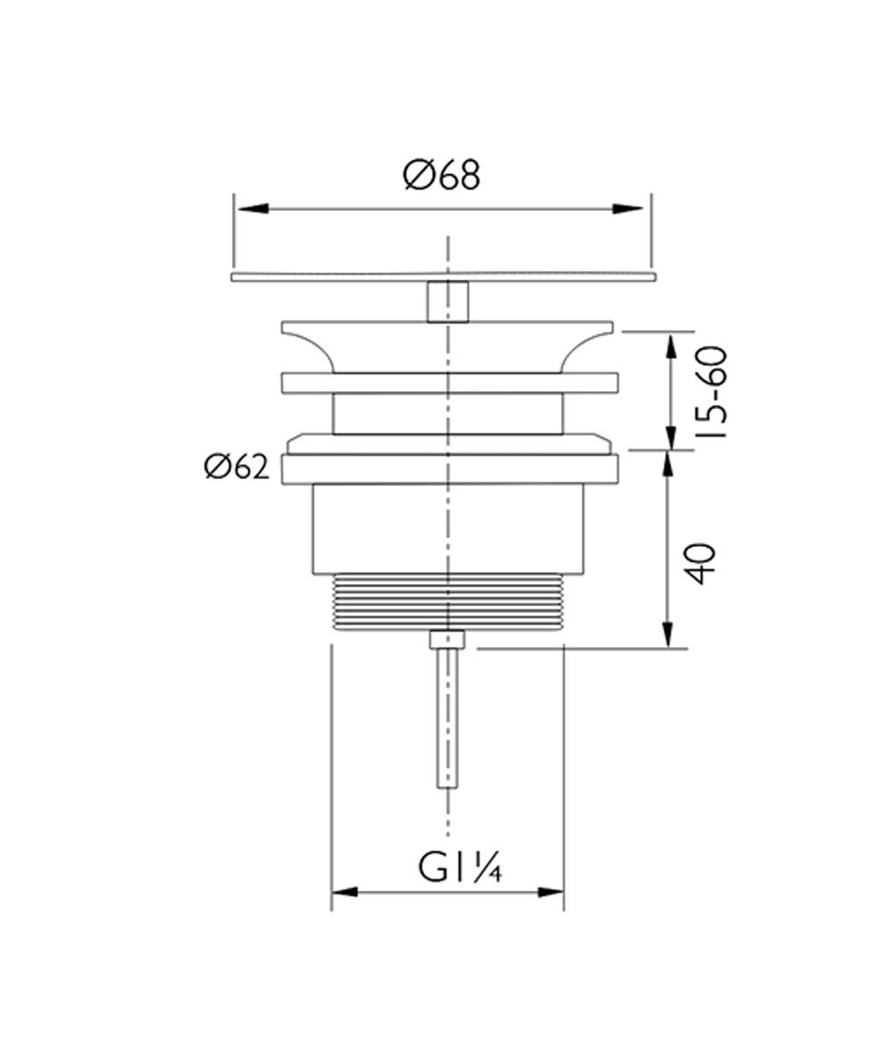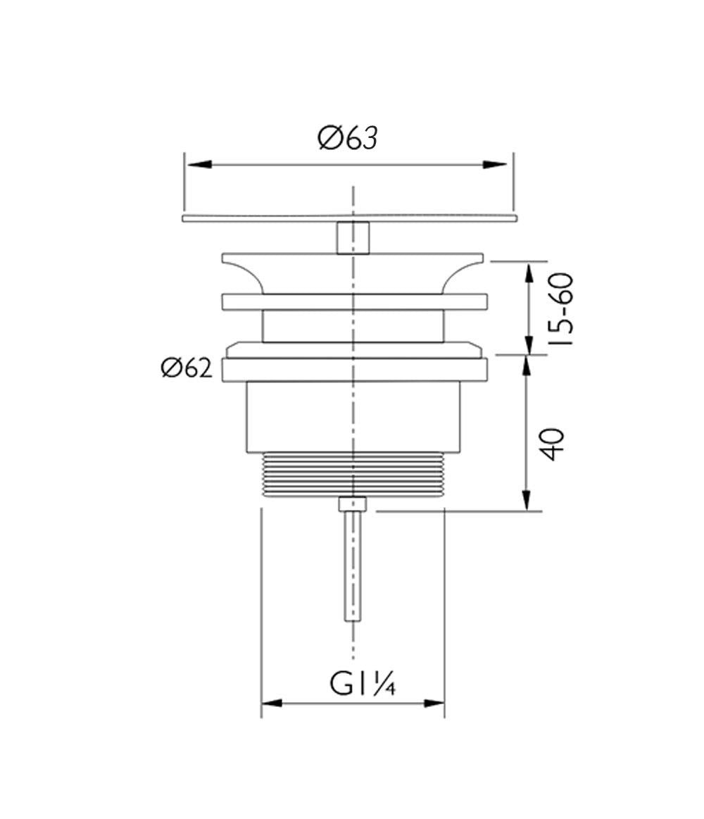 Cromo drain valve from the Wirquin brand with universal Quick Clac closure system, flat round, chrome-plated brass with screw. With or without overflow. 1" 1/4 outlet. Height 40 mm.