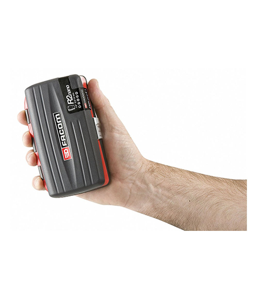 Set of 1/4 Sockets (5.5-14 mm) and R2NANO accessories from Facom. Ultra compact in a case with a folding and anti-slip strip. It has a ratchet compatible with the sockets thanks to the EC adapter. Quick selection of tools.