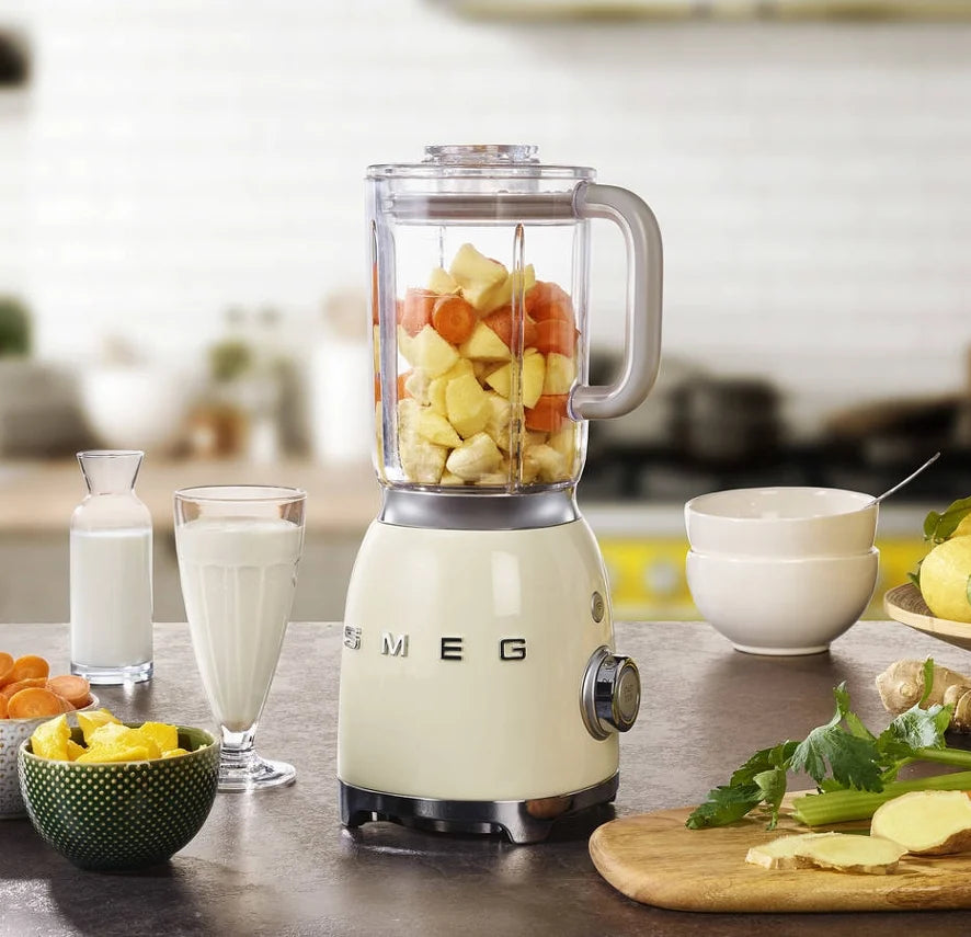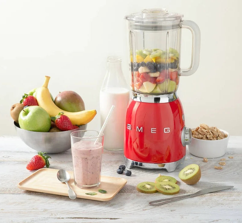 Smeg glass blender. Die-cast aluminum motor housing and base for greater protection. Blender with 50s style. Tritan jug.