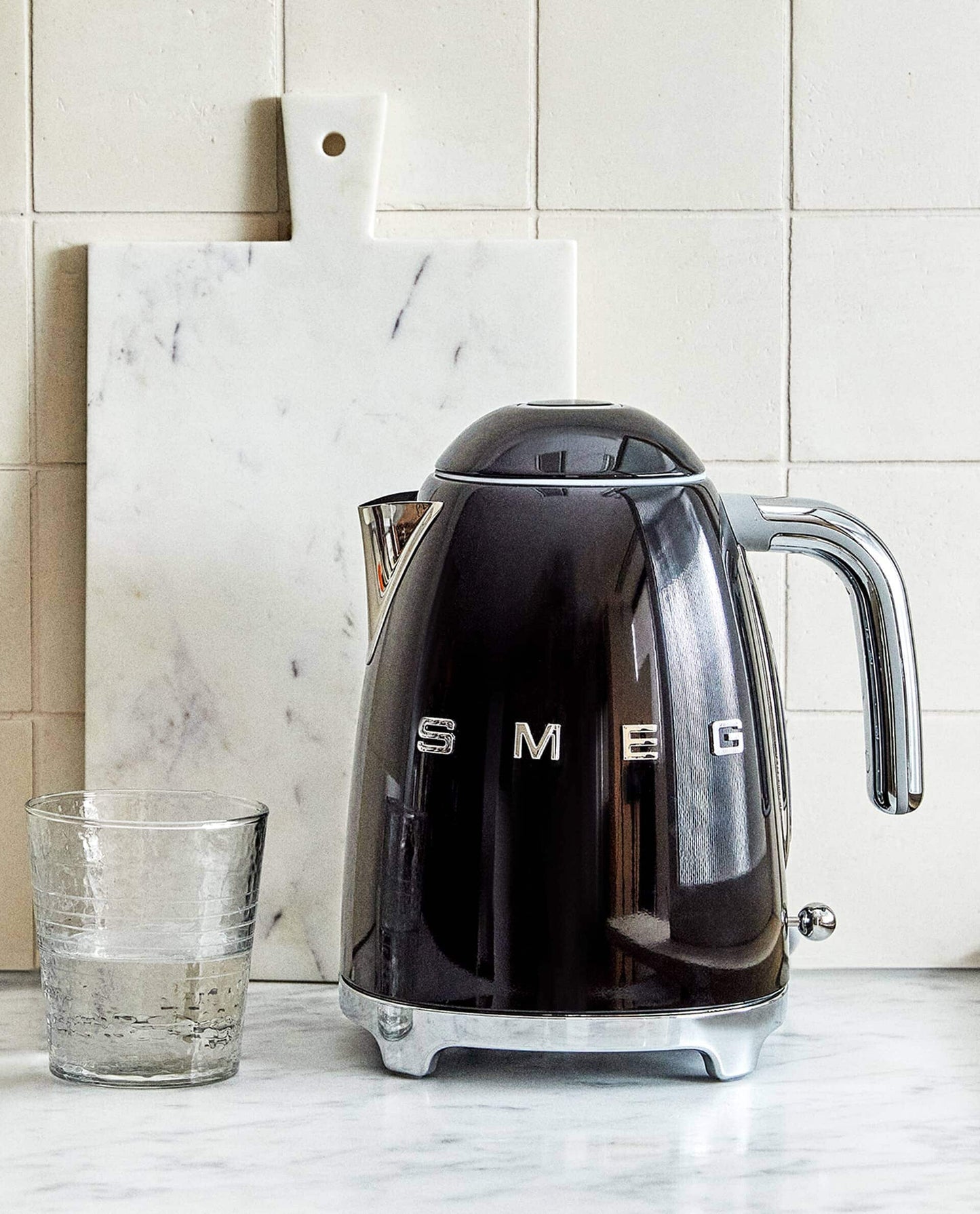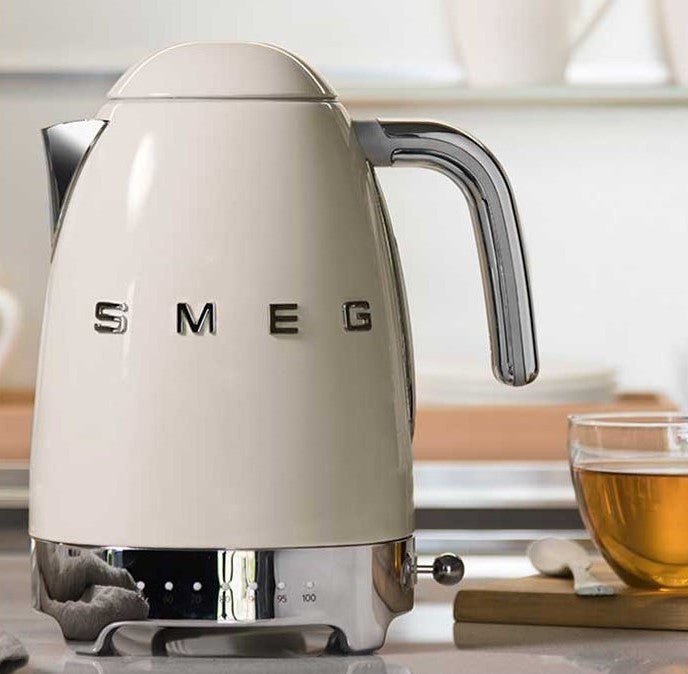 The Smeg Kettle is a small appliance with a stainless steel body and a retro 1950s style. It's perfect for heating water up to 100ºC, always with a touch of unparalleled design and in an easy, practical, and functional way.