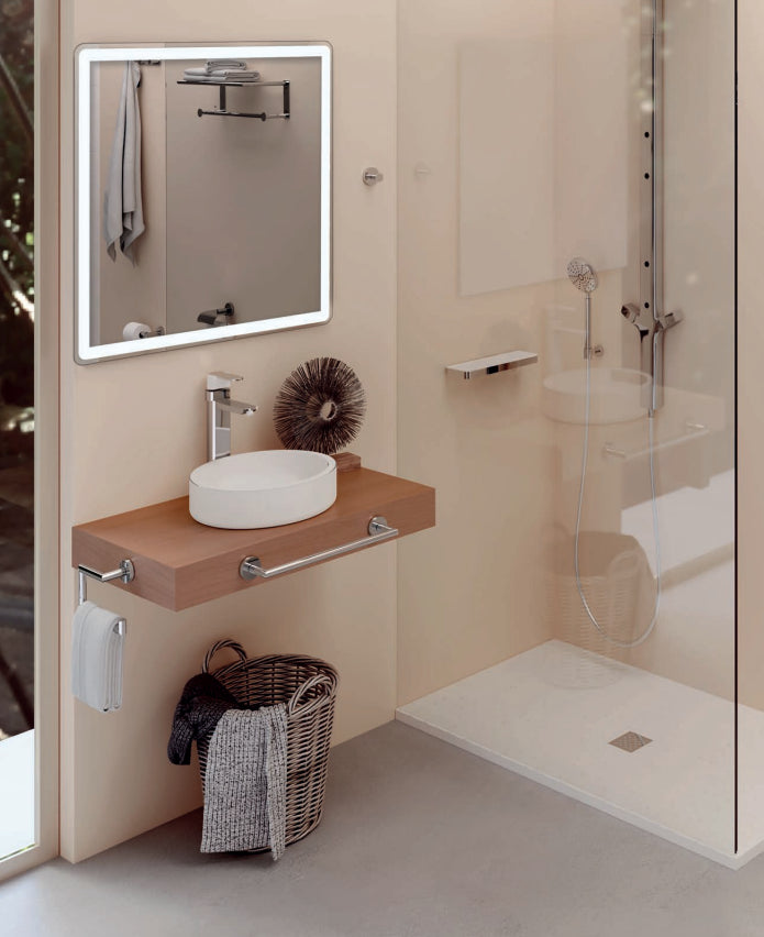 Towel ring for wall from the Eco Series by Manillons Torrent. Wall fixing with screws. Some essential bathroom accessories to hang towels. Made of high quality materials. Very functional bathroom accessory.